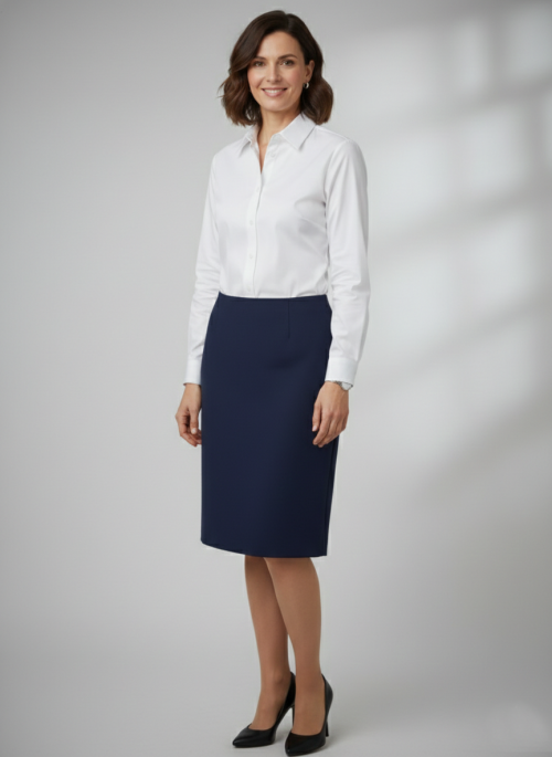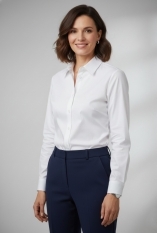 Cămașă clasică albă pentru profesori, cu mânecă lungă și închidere pe nasturi. Croială cambrată, realizată din material cu elastan, oferă confort și libertate de mișcare pe tot parcursul zilei. Ideală pentru ținuta profesională de școală.