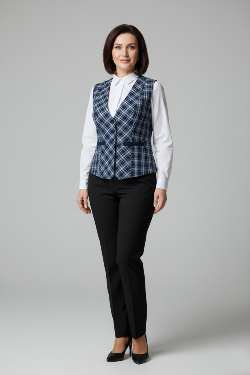 Vestă elegantă și practică, creată special pentru cadrele didactice, ideală pentru ținutele școlare zilnice. Realizată din material de calitate, cu model clasic în carouri, oferă un aspect îngrijit și profesionist. Croiala cambrată asigură confort pe tot parcursul zilei, iar designul fără mâneci permite asortarea ușoară cu cămăși sau bluze. Potrivită pentru școală, întâlniri educaționale și activități oficiale.