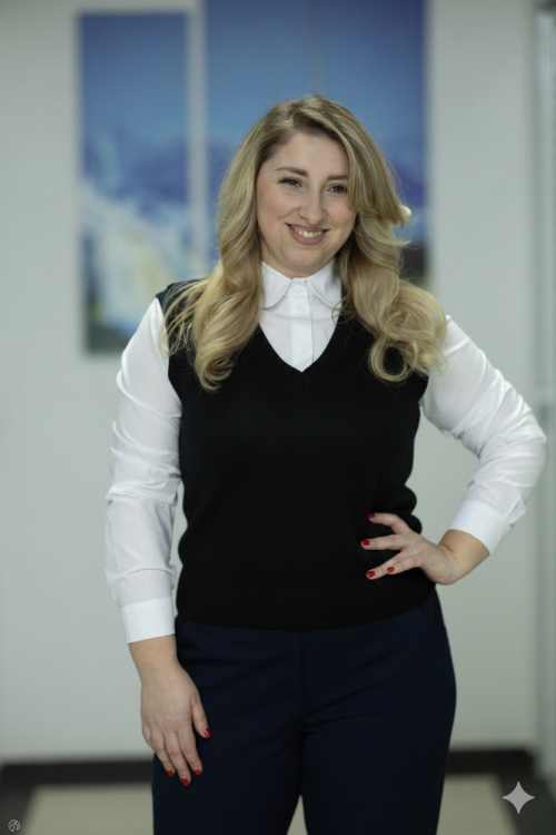 Această vestă elegantă, de culoare negru, este alegerea ideală pentru cadrele didactice care apreciază confortul și stilul clasic. Croiala feminină cu decolteu în „V” permite purtarea ușoară peste cămăși sau bluze, oferind o notă de profesionalism oricărei ținute școlare. Material tricotat de înaltă calitate, moale la atingere și rezistent la purtări zilnice.