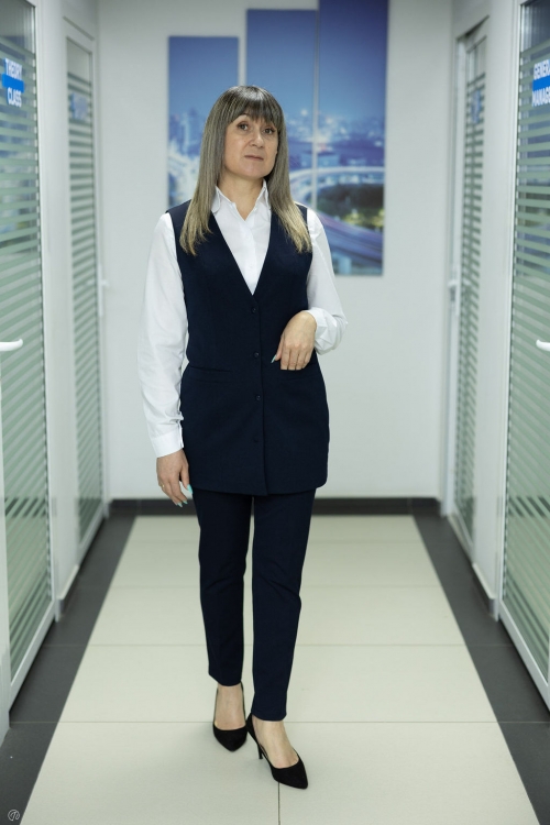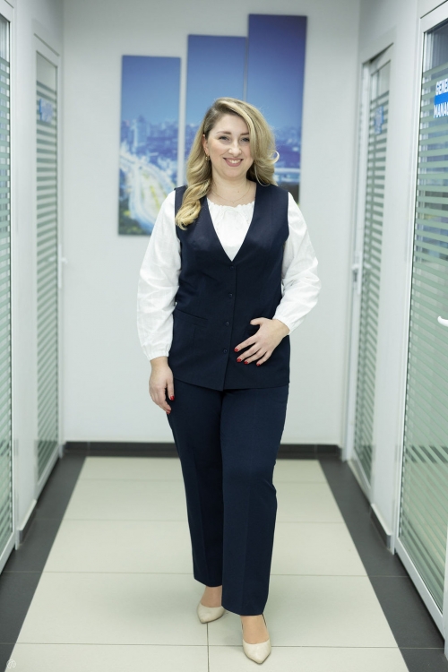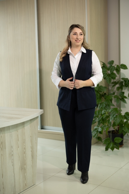 Această vestă clasică este alegerea ideală pentru cadrele didactice care apreciază profesionalismul și confortul în utilizarea zilnică. Croiala modernă, ușor cambrată, oferă o siluetă feminină și îngrijită, potrivindu-se perfect peste o cămașă sau o maletă.