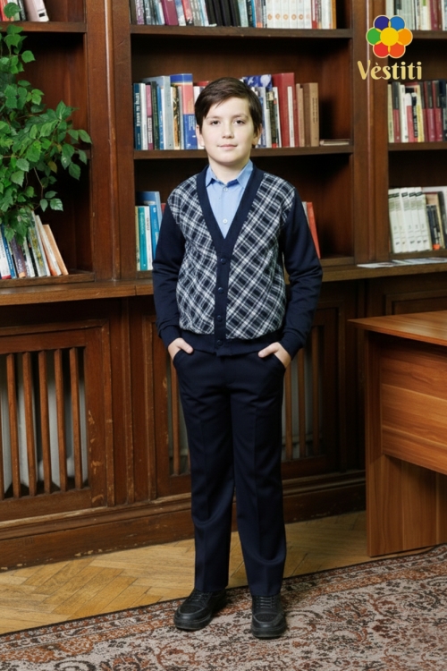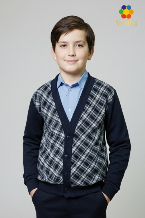 Трикотажная кофта на пуговицах — идеальный выбор для школы. Модель выполнена из мягкого, приятного к телу материала, обеспечивающего комфорт в течение всего дня. Классический крой с аккуратной планкой на пуговицах подчеркивает элегантность и строгость образа. Отлично сочетается с брюками. Подходит для школьных мероприятий, уроков и повседневной работы.