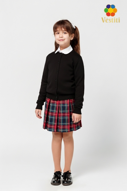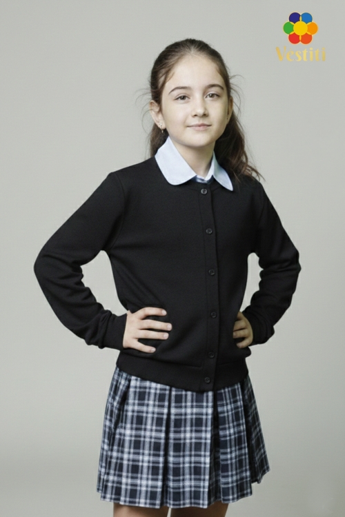 Bluză din tricotaj neagră cu nasturi — alegerea ideală pentru școala. Confecționat dintr-un material moale și plăcut la atingere, oferă confort pe tot parcursul zilei. Croiala clasică și nasturi discreți conferă un aspect elegant și profesional. Se potrivește perfect cu fuste și pantaloni. Recomandat pentru activități școlare, lecții și ținute de zi cu zi.