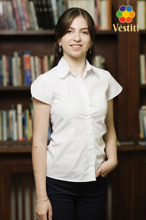 Cămașă elegantă pentru fete, realizată într-un stil clasic, potrivită pentru uniforma școlară. Model cu mânecă scurtă tip lalea, guler rotunjit și închidere cu nasturi. Materialul este plăcut la atingere, asigurând confort pe tot parcursul zilei. Ideală pentru școală, evenimente festive sau ținute formale.