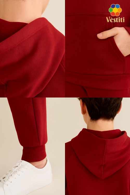 Honorac (3 fire) cu glugă și buzunare, mânecă cu manșete elastice.