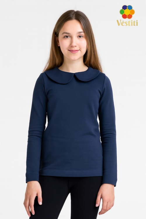 Maletă elegantă din tricot moale și plăcut la atingere. Modelul este prevăzut cu un guler franțuzesc delicat, care oferă ținutei un aspect rafinat și îngrijit.