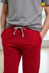 Pantaloni sport pentru bărbați de culoare roșu — model confortabil și practic pentru purtare zilnică. Confecționați din tricot gros 3 fire, care își păstrează bine forma și oferă confort termic.
