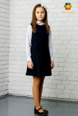 Sarafan școlar elegant de culoare albastru închis clasic. Modelul este realizat cu partea superioară atent finisată și căptușeală naturală, oferind confort în timpul purtării zilnice. Partea inferioară este plisată, creând o siluetă îngrijită și ordonată.