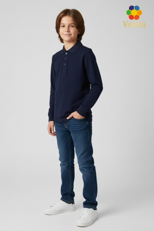 Model clasic de tricou polo, cu mâneci lungi, ideal pentru școală și purtare zilnică. Croiala dreaptă este completată de guler tip polo și plachetă cu nasturi. Materialul moale și elastic oferă confort pe tot parcursul zilei.