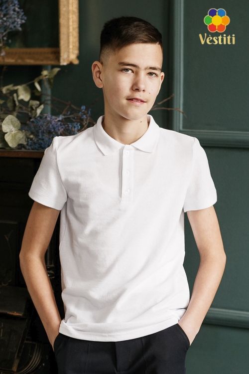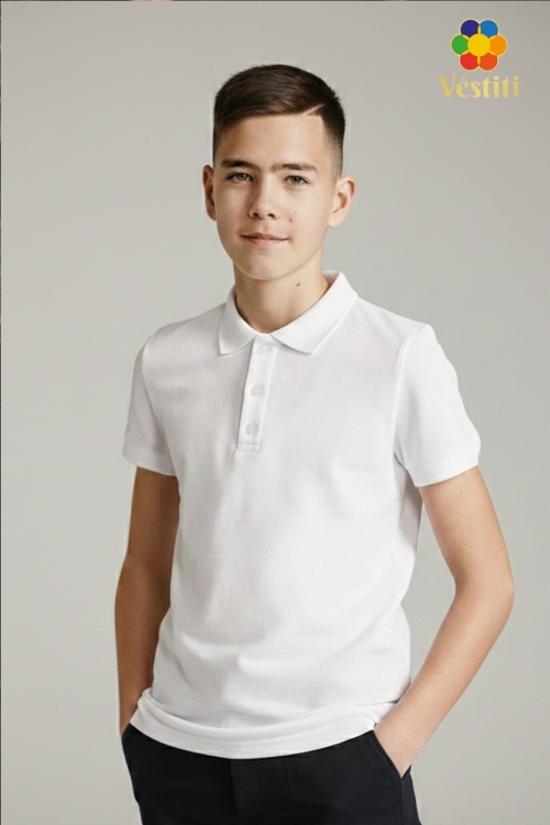Tricoul polo alb, cu design clasic, este alegerea ideală pentru școală și ținute de zi cu zi. Modelul este realizat într-o croială clasică, cu guler tip polo și plachetă cu nasturi. Mâneca scurtă oferă confort pe parcursul întregii zile.