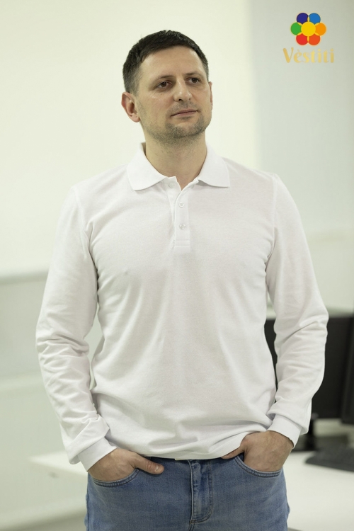 Tricou polo, albă mâneca lungă