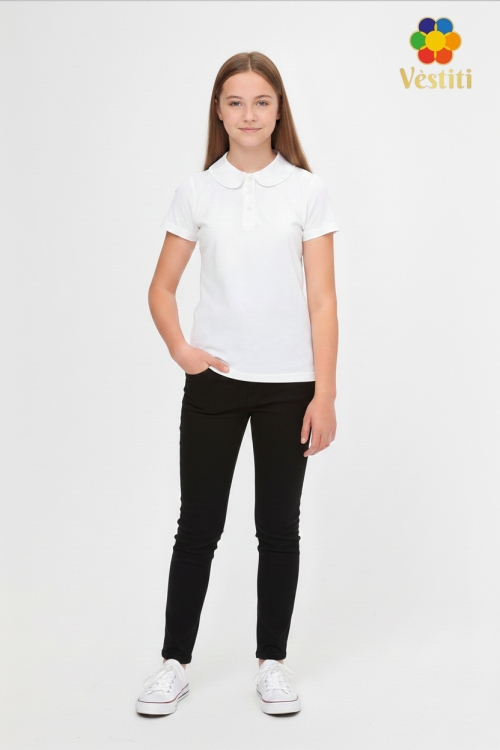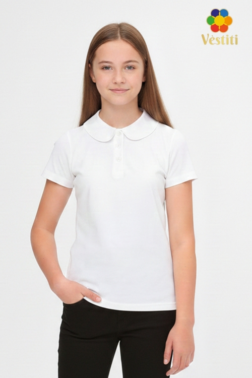 Tricou polo elegant cu guler franțuzesc — alegerea perfectă pentru școală și purtare zilnică. Modelul este realizat în culoare albă clasică, prevăzut cu fentă cu nasturi și mânecă scurtă. Gulerul franțuzesc oferă un aspect rafinat și îngrijit. Materialul este moale și plăcut la atingere, își păstrează bine forma și asigură confort pe tot parcursul zilei.