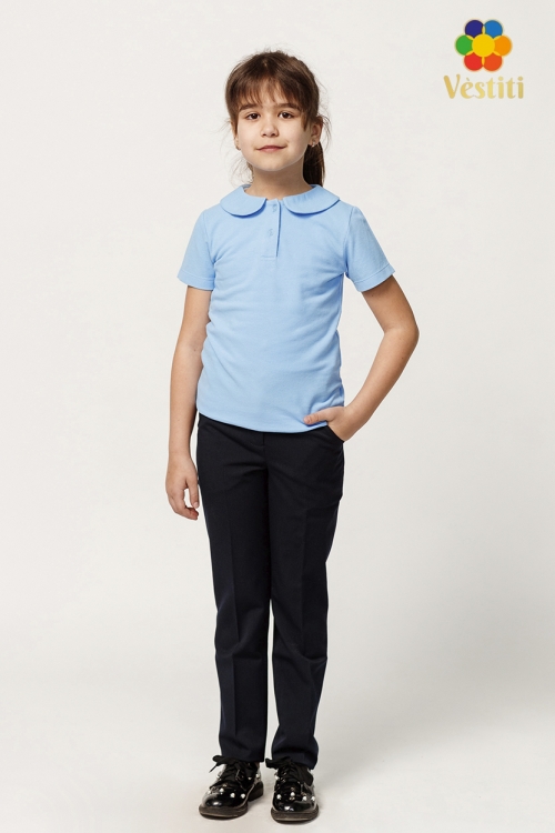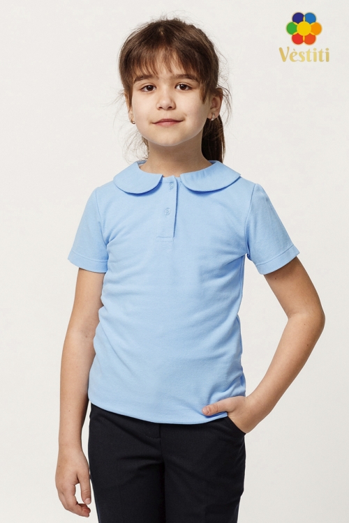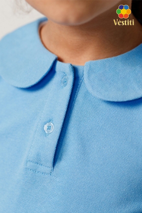 Tricou polo elegant cu guler franțuzesc — alegerea perfectă pentru școală și purtare zilnică. Modelul este realizat în culoare albastru deschis, prevăzut cu fentă cu nasturi și mânecă scurtă. Gulerul franțuzesc oferă un aspect rafinat și îngrijit. Materialul este moale și plăcut la atingere, își păstrează bine forma și asigură confort pe tot parcursul zilei.