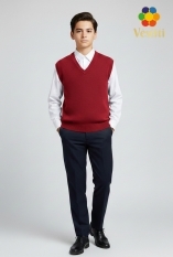 Vestă tricotată pentru băieți, realizată într-un stil clasic și elegant. Model fără mâneci, cu decolteu în V, ideal pentru purtarea peste cămașă. Țesătura este plăcută la atingere și confortabilă pentru utilizare zilnică la școală.