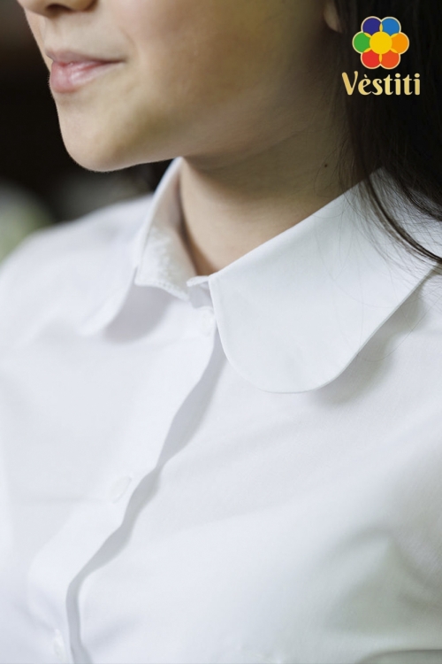 Cămașă elegantă pentru fete, realizată într-un stil clasic, potrivită pentru uniforma școlară. Model cu mânecă scurtă tip lalea, guler rotunjit și închidere cu nasturi. Materialul este plăcut la atingere, asigurând confort pe tot parcursul zilei. Ideală pentru școală, evenimente festive sau ținute formale.