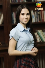 Această cămașă elegantă pentru fete este realizată dintr-un material plăcut la atingere și are un design rafinat cu jabou în partea frontală cu mâneca scurtă. Perfectă pentru evenimente școlare sau ocazii speciale, oferă un aspect clasic și sofisticat.