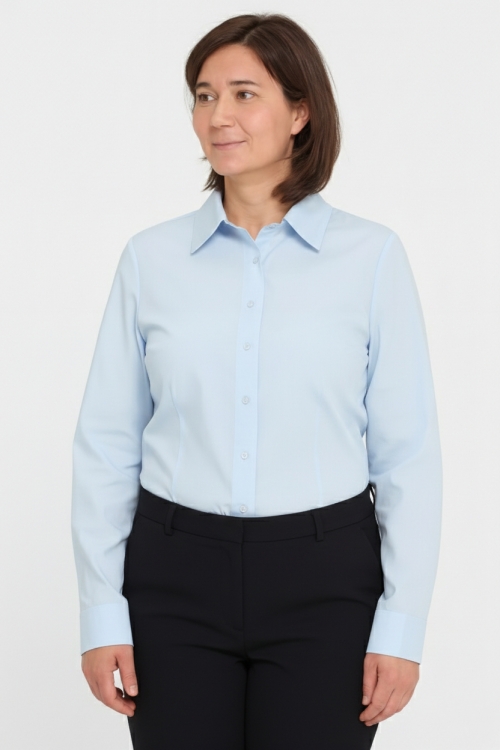 Классическая голубая рубашка для учителей с длинным рукавом, на пуговицах. Приталенный крой, элегантная и удобная, идеально подходит для повседневной носки в школе.