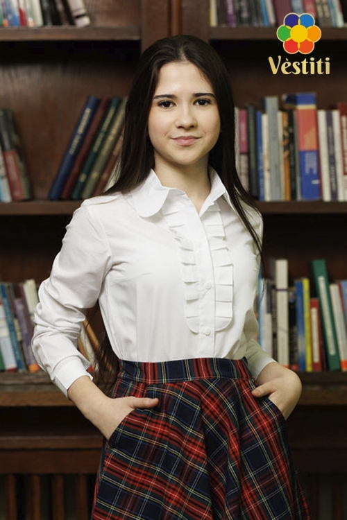 Această cămașă elegantă pentru fete este realizată dintr-un material plăcut la atingere și are un design rafinat cu jabou în partea frontală. Perfectă pentru evenimente școlare sau ocazii speciale, oferă un aspect clasic și sofisticat.
