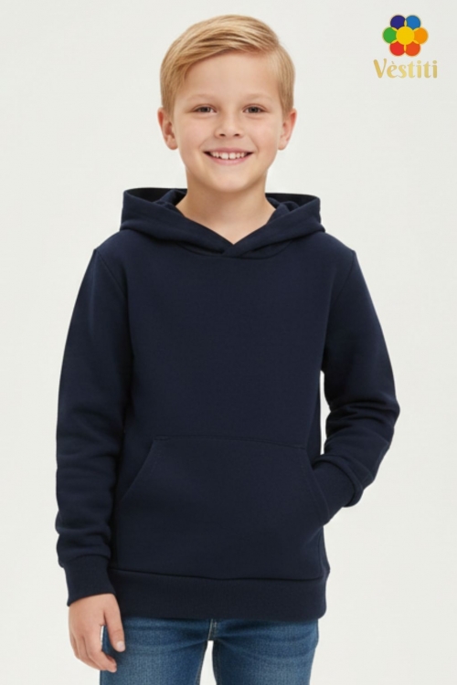 Hanorac modern pentru copii, realizat din tricot dublu (două fire) — o alegere confortabilă și practică pentru purtare zilnică. Model cu glugă și buzunar tip cangur spațios. Mânecile sunt prevăzute cu manșete, iar partea de jos este finisată cu manșetă pentru o fixare mai bună și păstrarea formei. Materialul moale și elastic este plăcut la atingere și oferă libertate de mișcare.