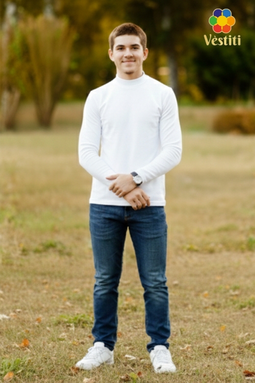 Maletă albă clasică, cu mânecă lungă și guler tip ștei. Model realizat în culoare albă universală, perfect pentru școală și purtare zilnică. Manșetele la mâneci oferă o fixare confortabilă și un aspect îngrijit. Materialul moale și elastic este plăcut la atingere și permite libertate de mișcare.