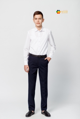 Элегантные и удобные брюки, идеально подходящие для школы и официальных мероприятий. Выполнены из качественной ткани (62% полиэстер, 33% вискоза, 5% эластан), которая хорошо держит форму и обеспечивает комфорт в движении. Прямой крой, застежка на молнию и пуговицу, пояс со шлевками под ремень и эластичной лентой для регулировки талии. Оснащены практичными боковыми карманами. Доступны в двух универсальных цветах — черном и темно-синем. Стильный и функциональный выбор для школьной формы.