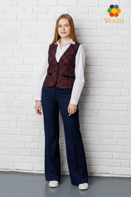 Pantaloni eleganți pentru școală, cu croială ușor evazată, care oferă un aspect modern și bine proporționat. Modelul este prevăzut cu buzunare laterale și bandă elastică în talie, pentru reglarea circumferinței și un plus de confort. Materialul este rezistent, plăcut la purtare și potrivit pentru utilizare zilnică.