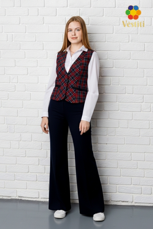 Pantaloni eleganți pentru școală, cu croială ușor evazată, care oferă un aspect modern și bine proporționat. Modelul este prevăzut cu buzunare laterale și bandă elastică în talie, pentru reglarea circumferinței și un plus de confort. Materialul este rezistent, plăcut la purtare și potrivit pentru utilizare zilnică.