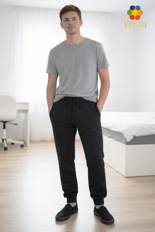 Pantalonii au talie elastică cu șnur reglabil pentru o potrivire optimă. Partea de jos este prevăzută cu manșete, asigurând o fixare bună și un aspect îngrijit. Sunt prevăzuți cu buzunare laterale practice pentru obiecte mici.
