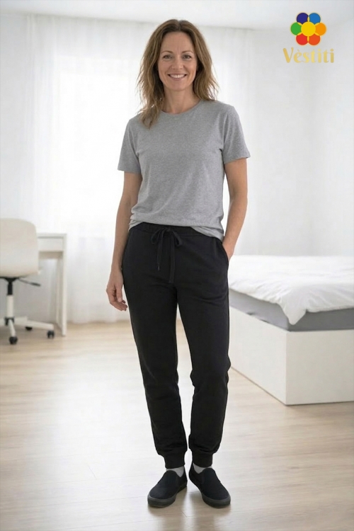 Pantalonii au talie elastică cu șnur reglabil pentru o potrivire optimă. Partea de jos este prevăzută cu manșete, asigurând o fixare bună și un aspect îngrijit. Sunt prevăzuți cu buzunare laterale practice pentru obiecte mici.
