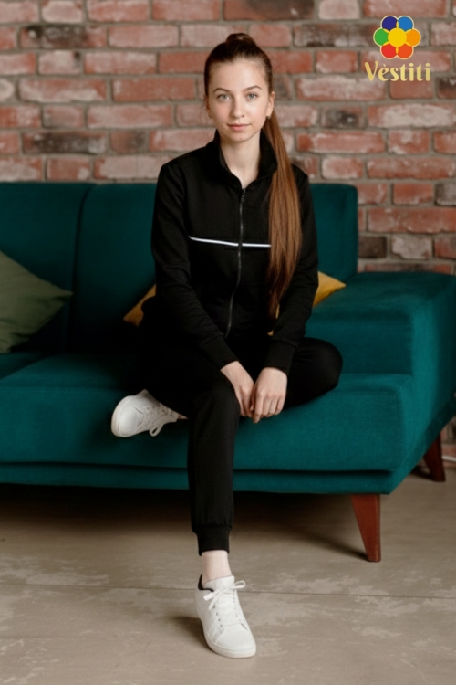 Trening din două fire, negru, cu fermoar – comod și practic pentru fiecare zi.