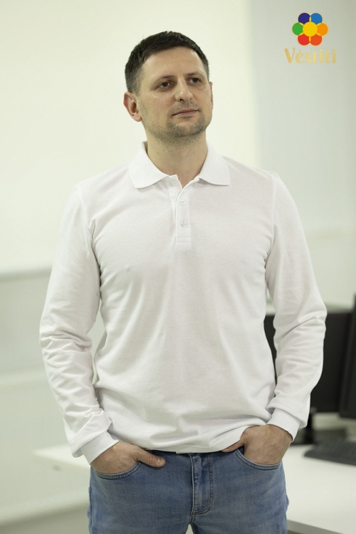 Tricou polo, alb mâneca lungă
